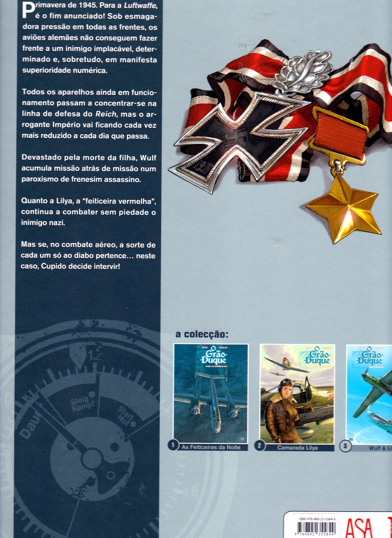 "Primavera de 1945. Para a Luftwaffe, é o fim anunciado! Sob esmagadora pressão em todas as frentes, os aviões alemães não conseguem fazer frente a um inimigo implacável, determinado e, sobretudo, em manifesta superioridade numérica.Todos os aparelhos ainda em funcionamento passam a concentrar-se na linha de defesa do Reich, mas o arrogante Império vai ficando cada vez mais reduzido a cada dia que passa.Devastado pela morte da filha, Wulf acumula missão atrás de missão num paroxismo de frenesim assassino.Quanto a Lilya, a...
