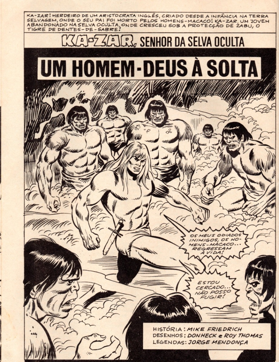 MUNDO DE AVENTURAS - 5ª SÉRIE KA-ZAR 9. HOMEM-DEUS À SOLTA (UM) Uma BD de Friedrich, Mike e Heck, Don 1ª Edição de 04-1977 editado pela revista MUNDO DE AVENTURAS - 5ª SÉRIE 17 pranchas Código BD MANIA 972000009 DETALHE DA EDIÇÃO NA BDMANIA A SÉRIE Tomo 1 Tomo 2 Tomo 3 Tomo 4 Tomo 5 Tomo 6 Tomo 7 Tomo 8 Tomo 9