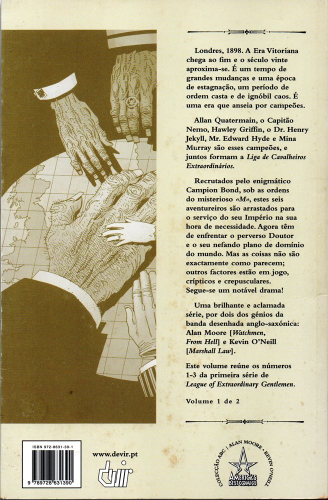 Devir LIGA DE CAVALEIROS EXTRAORDINÁRIOS (A) 1. LIGA DE CAVALEIROS EXTRAORDINÁRIOS (A) - V.1 Uma BD de Moore, Alan e Kevin O Neill 1ª Edição de 03-2001 editado por Devir 88 pranchas Código BD MANIA 1048000001 DETALHE DA EDIÇÃO NA BDMANIA A SÉRIE Tomo 1 Tomo 2