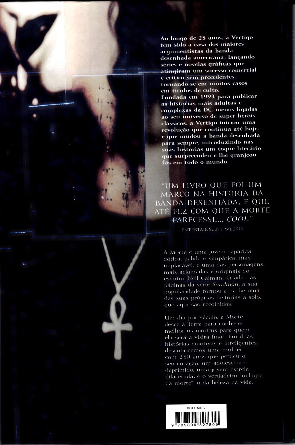 Um dia por século, a Morte desce à Terra para conhecer melhor os mortais para quem ela será a visita final. Em duas histórias emotivas e inteligentes, descobriremos uma mulher com 250 anos que perdeu o seu coração, um adolescente deprimido, uma jovem estrela dilacerada, e o verdadeiro “milagre da morte”, o da beleza da vida. “Um livro que foi um marco na história da banda desenhada, e que até fez com que a morte parecesse… cool.” – Entertainment Weekly A história que abre este volume é O Alto Custo da Vida, a primeira aventura a solo da Morte, publicada originalmente em 1993. Esta primeira história desenvolve uma lenda abordada na série Sandman, de que, um dia por século, a Morte encarna e desce à Terra para conhecer melhor os mortais para quem ela será a visita final. Cheio de diálogos mordazes ao longo da história, O Alto Custo da Vida traz importantes metáforas e questões ao leitor. Viver como uma humana por um curto período de tempo faz com que a Morte aproveite cada segundo como se fosse o último. Morte: O Melhor Momento da tua vida, publicada originalmente em 1996, é outra das histórias pertencentes a este volume. Desta vez, a Morte tem um papel mais passivo. Acompanhamos a história de Hazel e da sua namorada, a compositora e cantora Foxglove, que por mais que ame imensamente a família que formou com Hazel e o seu pequeno filho, é proibida de assumir a sua homossexualidade, a fim de que não comprometer a sua carreira. A completar este volume, temos ainda duas histórias curtas: A Roda, ilustrada por Chris Bachalo, em que Gaiman presta uma sentida homenagem às vítimas do 11 de Setembro, e a Morte Fala sobre a Vida, onde a personagem fala sobre a importância do sexo seguro e exemplifica as suas modalidades, com a ajuda de John Constantine (Hellblazer).