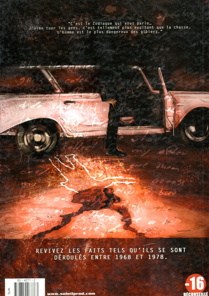 Soleil TUEURS EN SÉRIE 1. ZODIAC KILLER Uma BD de David, Fabrice e Fino, Serge 1ª Edição de 01-1967 editado por Soleil 46 pranchas Código BD MANIA 1756000001 DETALHE DA EDIÇÃO NA BDMANIA A SÉRIE Tomo 1